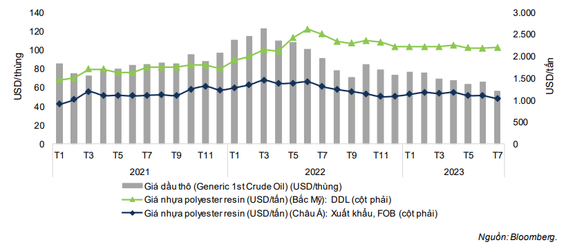 - Polyester Resin quanh vùng 1.143 USD/tấn; giá dầu tăng 20% trong quý 3 khiến chi phí tăng và ảnh hưởng biên lợi nhuận